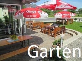 Gastgarten und Hof: Unser bezaubernder ruhiger Gastgarten lädt sie an warmen Sommertagen ein um ein Eis von unserer großen Eiskarte zu genießen. Oder gönnen sie sich unter einem Sonnenschirm einfach ein Bier nach der Arbeit. Zum abschalten vom Alltag, lädt auch der urige teilüberdachte Hof ein, dazu genießen sie von unserer Speisekarte ein Schnitzel mit einem eisgekühlten Most vom Bauern aus der Region Mitterkirchen.